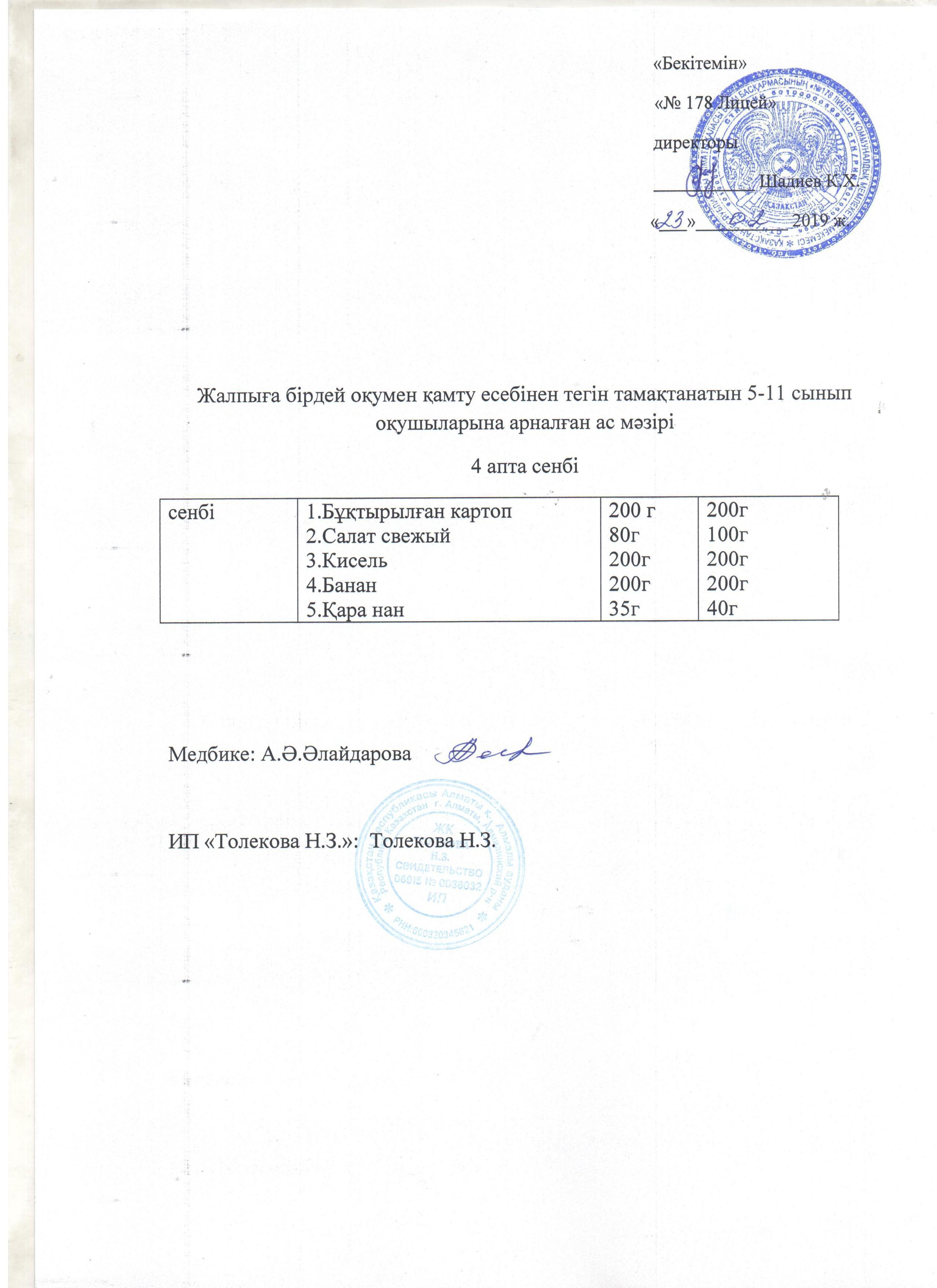 Ас мәзірі - 08.02.2019 жыл