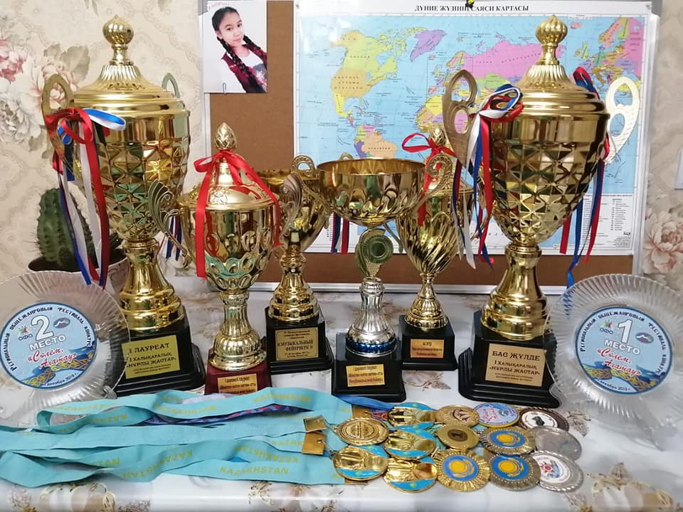 "Музыкальный фейерверк" байқауының жүлдегері, "Өнерлі Өркениет" байқауы мен "Жас Таланттар" және "Жеңіспен келген көктем" байқауларының І лауреат иегері атанса, "Нұрлы жастар - Болашаққа жас қадам" байқауынан Бас Жүлде, "Сәлем, Алатау" байқауынан І орын иегері. Сондай-ақ 2019-2020 оқу жылында М. Мақатаевтың құрметіне арналған лицейішілік сайыстан, командалық құрам ретінде қатысып Бас Жүлдені жеңіп алды.