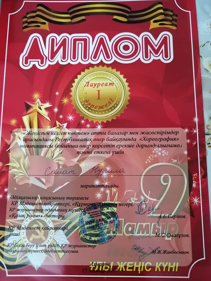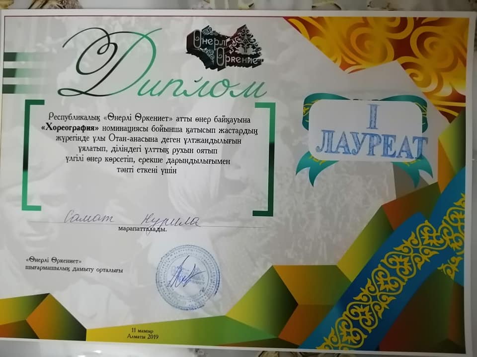 Талантты оқушымызға алдағы уақытта сәттілік пен жеңіс тілейміз!