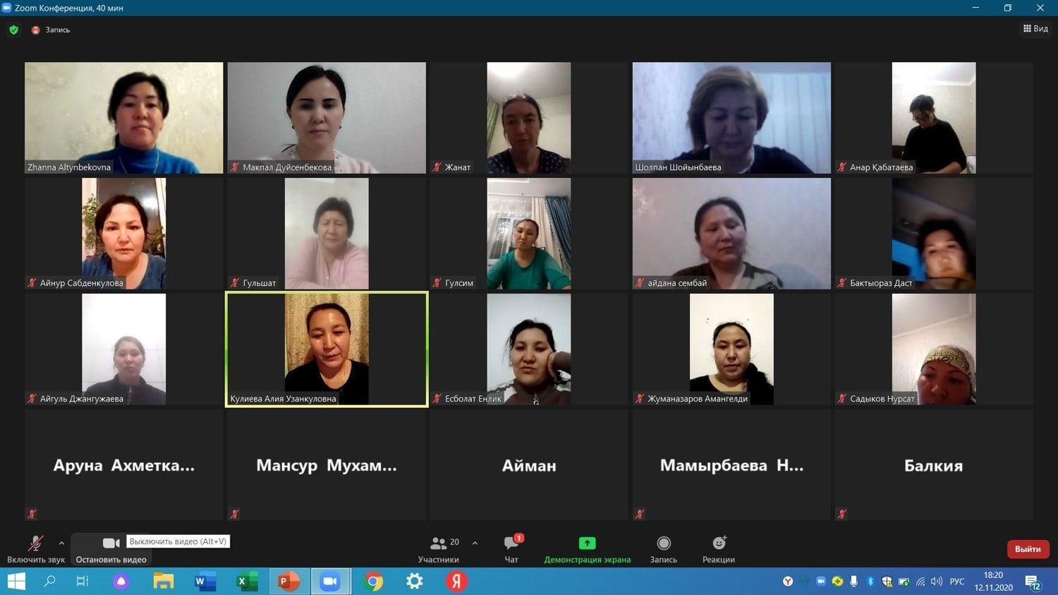 2020 жылдың 12 қараша күні "Ата-ана мен бала арасындағы болашаққа сенімділіктерін арттыру" тақырыбында лицей психологі Жанна Агажанова мен директордың тәрбие ісі жөніндегі орынбасары Мақпал Дуйсенбекова және әлеуметтік педагог Шолпан Шойынбаева көп балалы ата-аналарға Zoom сессия залы арқылы тренинг өткізді. Мақсаты: ҰБТ-ге психологиялық қолдау, ата-ана, оқушы арасындағы қарым-қатынасты нығайту. Тренинг барысында жапондық зерттеуші Масару Эмотоның шағын лабораториялық зерттеуі ұсынылды. Ата-аналар тарапыннан сөз алып, кері байланыс жүргізілді.