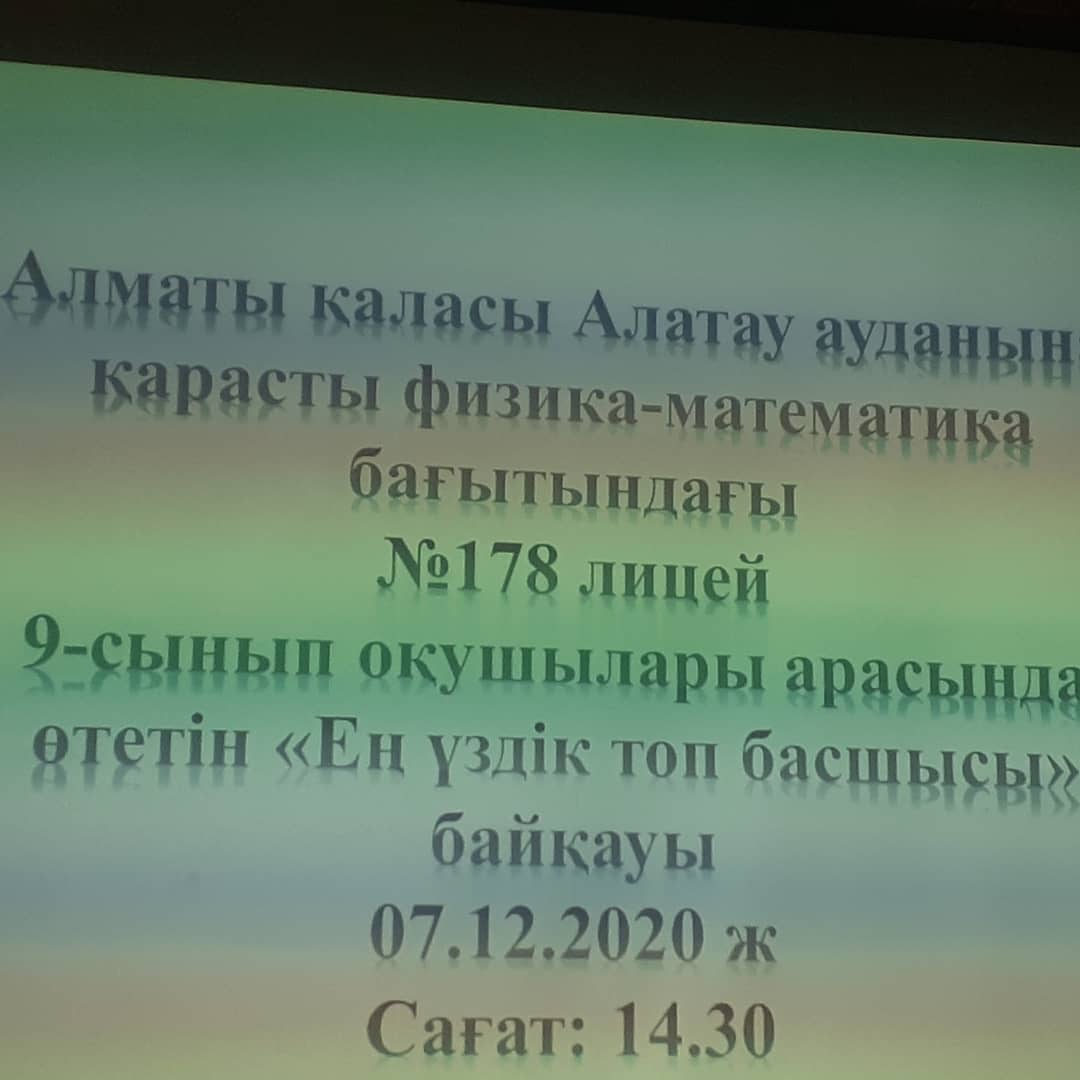Лицейімізде санитарлық талаптарды сақтай отырып, 9 сынып оқушылары арасында "Ең үздік топ басшысы" байқауы өткізілді. Байқаудың мақсаты: топ басшыларының көшбасшы ретінде өздерін дәлелдеу, сыныпты ұйымшылдыққа, татулыққа баулып, сынып жетістіктері мен тәртібін қадағалау. Нәтижесінде 9 "Б" сыныбының топ басшысы Мейірім Милана "Ең үздік топ басшысы" атағын жеңіп алып, Бас жүлде иегері атанды.