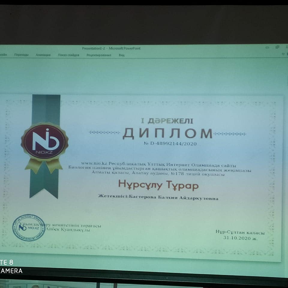 ІІІ орын - Бейбитова Рада (9 "Д" сынып);