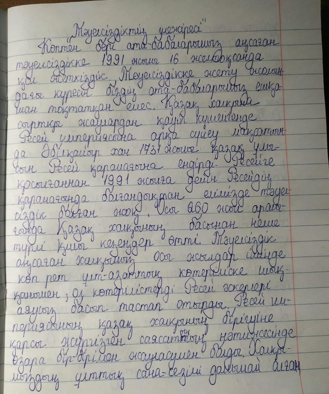"Тәуелсіздіктің шежіресі" тақырыбында эссе байқауы