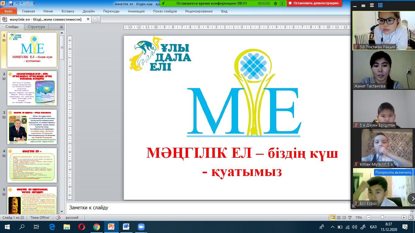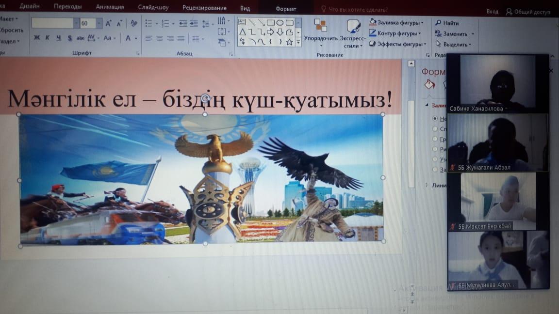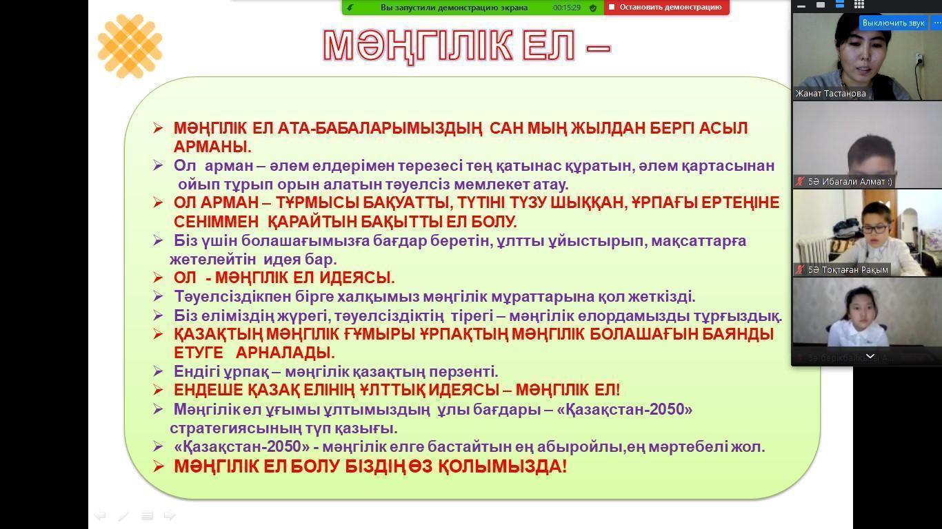 "Мәңгілік ел –біздің күш- қуатымыз" тақырыбында бірыңғай сынып сағаттары өткізілді