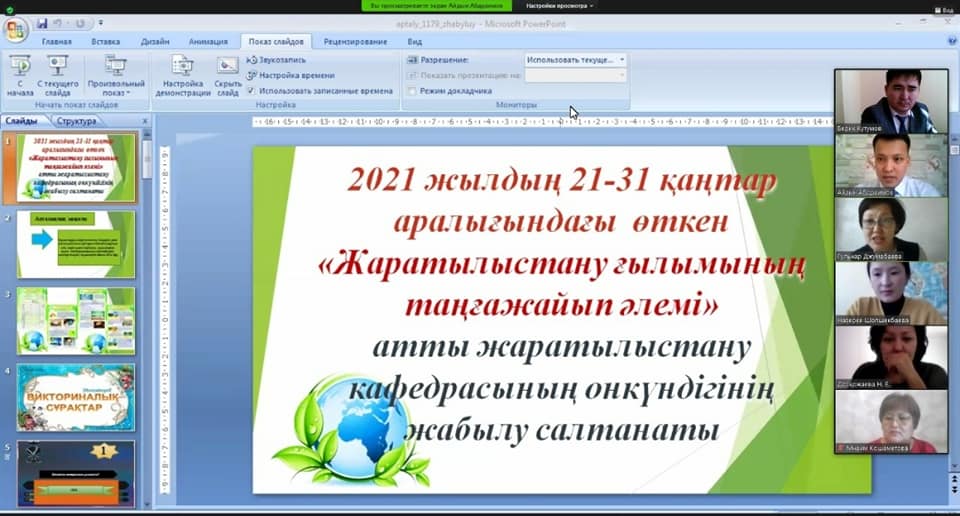 2021 жылдың 30 қаңтар күні жаратылыстану пәндері кафедрасының "Жаратылыстану ғылымының таңғажайып әлемі" атты онкүндіктің жабылуы өтті. Жауапты мұғалімдер: Шопшекпаева Н.У., Абдараймов А.А., Тәліп М.Н.