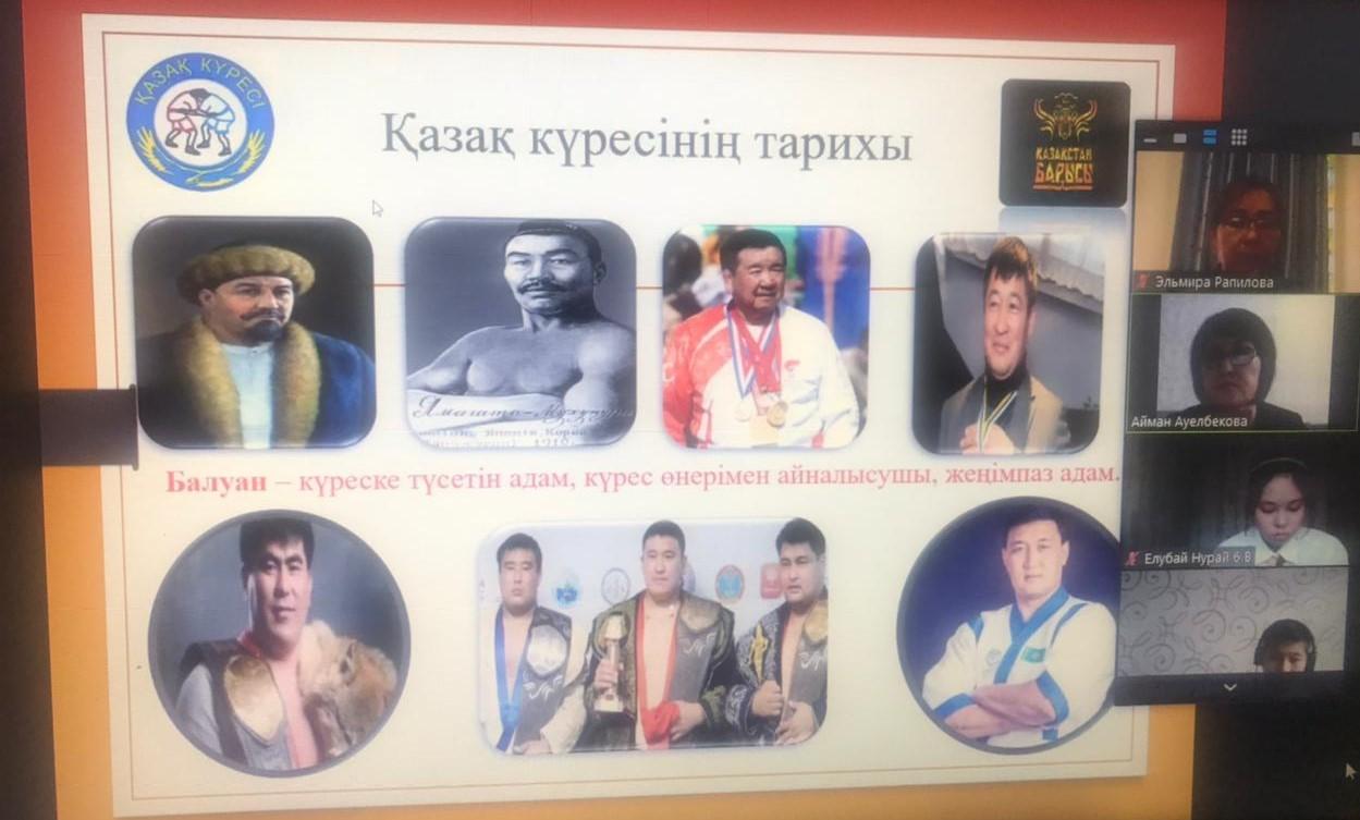 2021 жылдың 6 ақпан күні қазақ тілі мен әдебиеті пәнінің онкүндігі аясында Ауелбекова Айман Айтжанқызы “Күш атасы-Қажымұқан” тақырыбында 6 "В" сыныбында ашық сабақ өткізді. Мұғалім сабақта әдіс-тәсілдерді тиімді пайдалана отырып, оқу мақсатына қол жеткізді. ”Bilimland”, Quizizz.com сайттары арқылы қашықтықтан оқытуда оқушыларды сабаққа қызықтыра отырып, сапалы сабақ ұсынды.