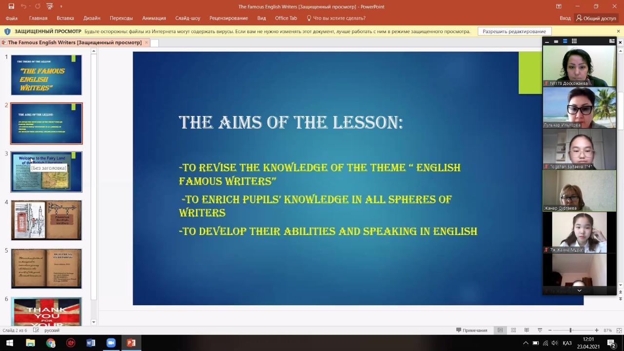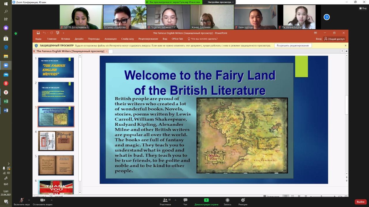 “The Famous English Writers” тақырыбында онлайн сыныптан тыс сабақ өткізілді.