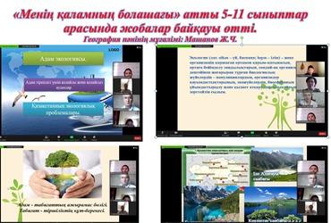 География пәнінің мұғалімі Машанов Жанатбектің ұйымдастыруымен 9-11 сыныптар арасында «Менің қаламның болашағы» атты жобалар байқауы бойынша слайд, бейнефильм негізінде өткізілді.