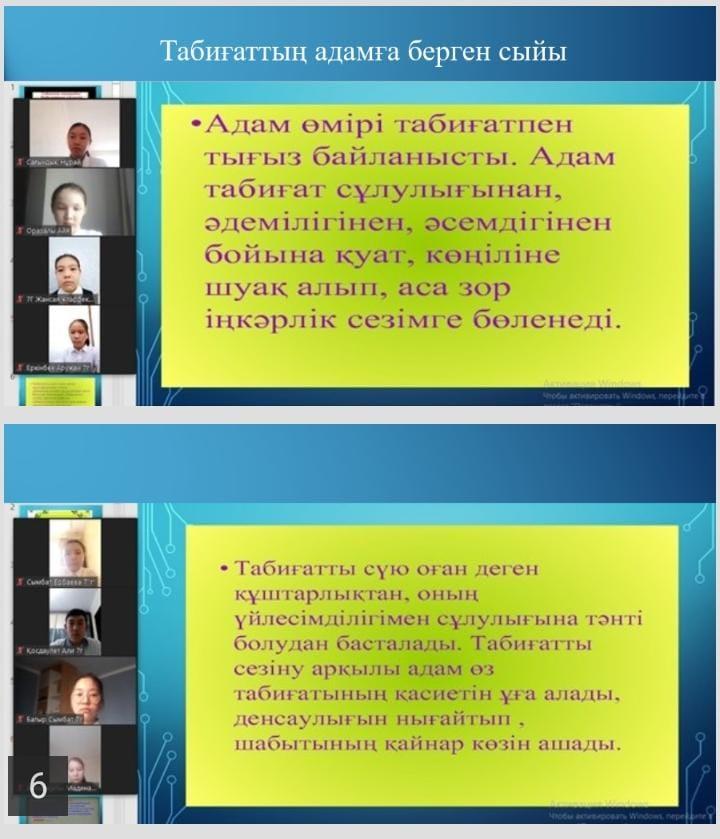 География пәні мұғалімі Жумабаева Гүлжан «Табиғат үйлесімді өмір сұру» экологиялық викторинасын өткізді.