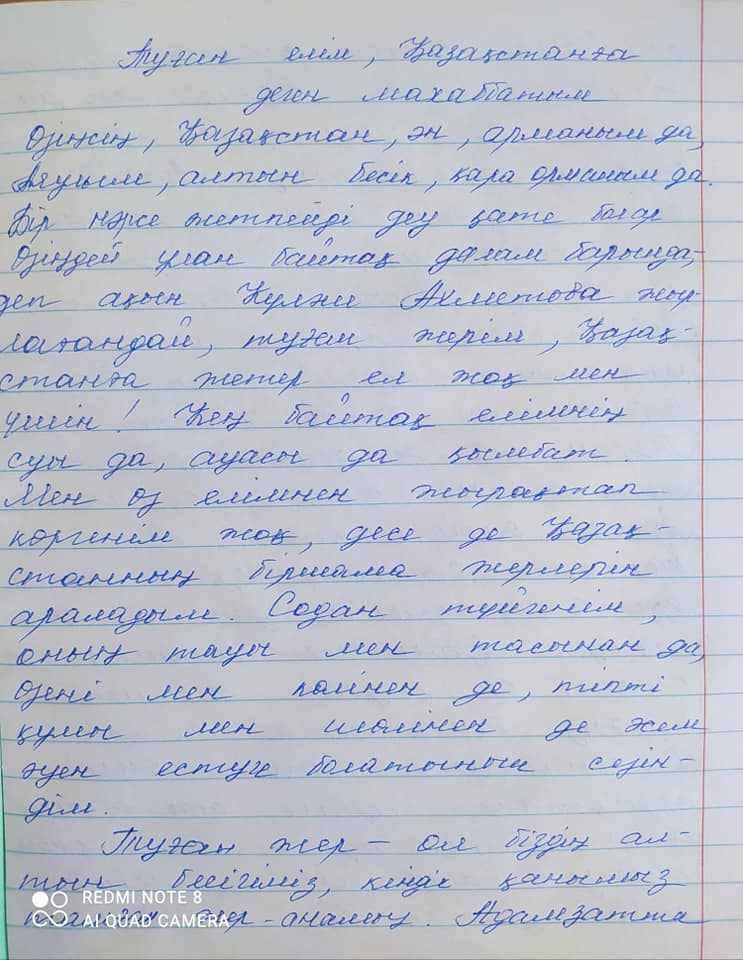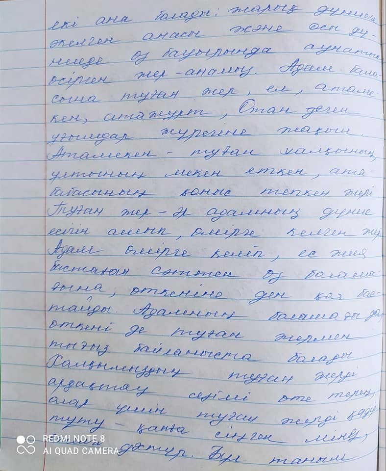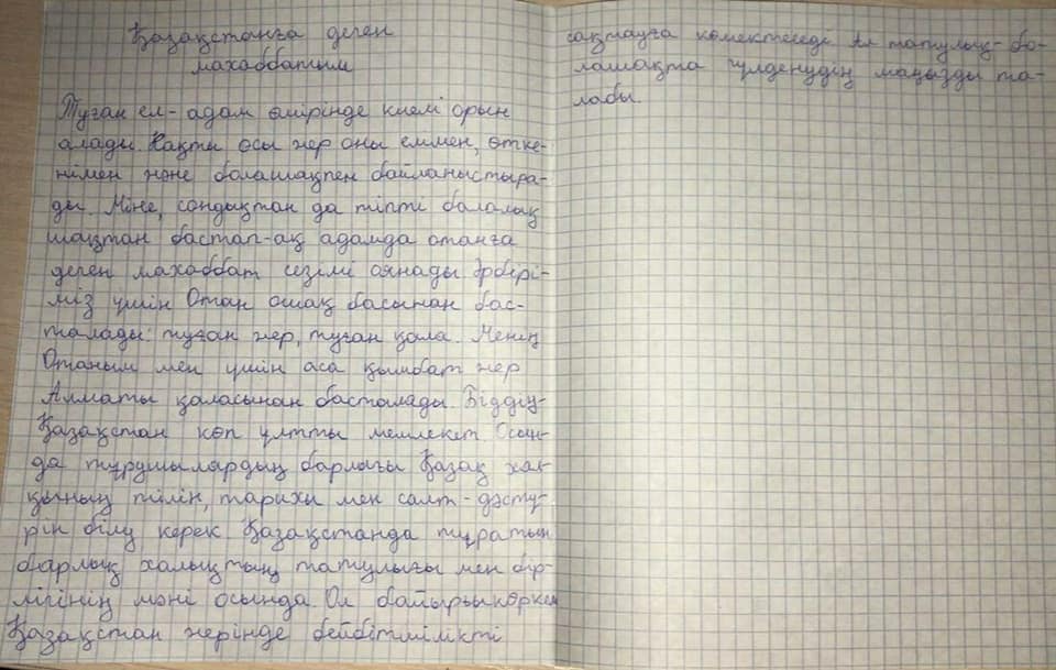 "Туған елім Қазақстанға деген махаббатым" тақырыбында оқушылар эссе жазды