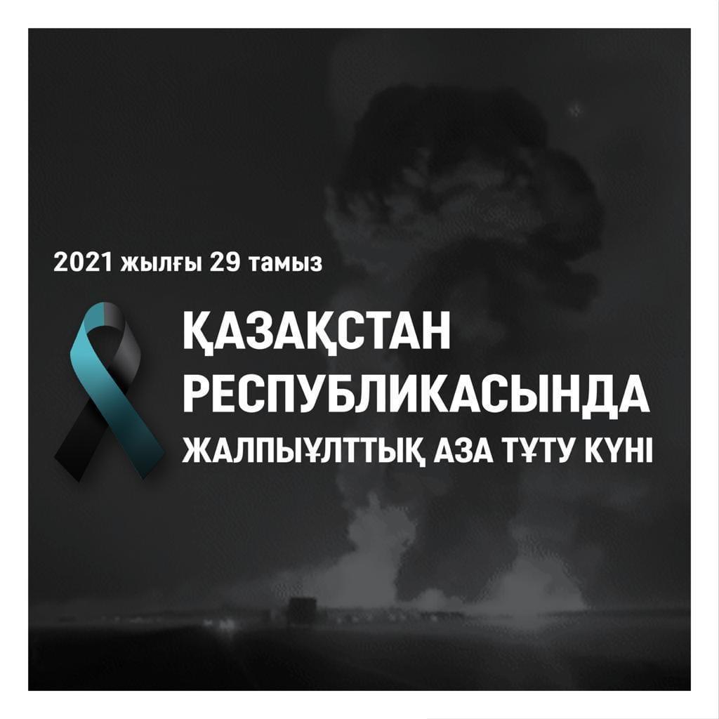 "Жамбыл облысының Байзақ ауданында адам өліміне әкеп соққан қайғылы оқиғаға байланысты 29 тамызды Жалпыұлттық аза тұту күні деп жариялаймын. Қаза тапқан әскери қызметкерлер мен құтқарушылар шынайы ерлік пен қайсарлық танытты. Олар халықтың жадында мәңгі қалады", – деп жазды Тоқаев.
