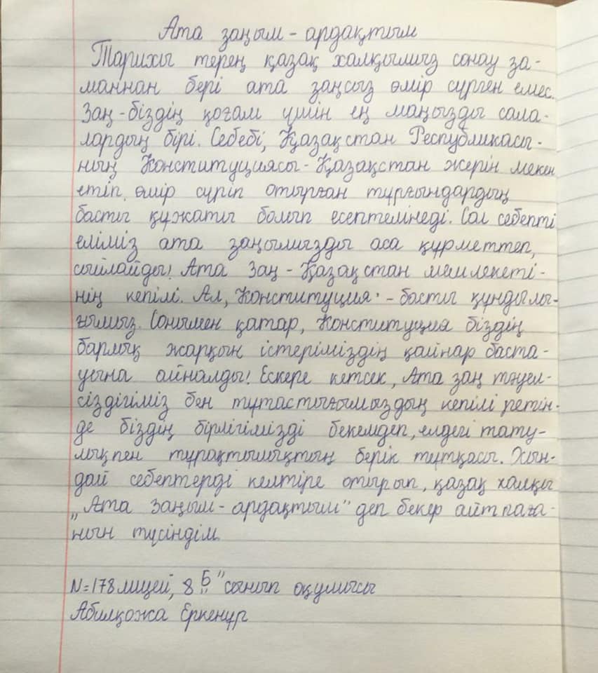 30 тамыз - Конституция күні қарсаңында 8-10 сынып оқушылары "Ата заңым - ардақтым" тақырыбында эссе жазды