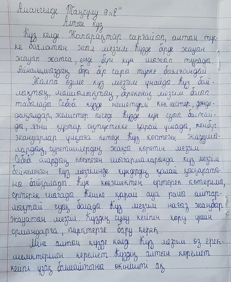 02 ноябрь 2021 0 1 2 3 4 5 «Алтын күз» тақырыбында эссе байқауы өткізілді. №178 мамандандырылған лицейде 5-9 сынып оқушылары арасында «Алтын күз» тақырыбында эссе байқауы өткізілді.Мақсаты – Оқушылардың күз мезгілі туралы түсініктері мен білімдерін кеңейту.Еңбекке, табиғатты сүюге, қорғауға, адамгершілікке тәрбиелеу. Осы беттің QR-коды:QR-код этой страницы: