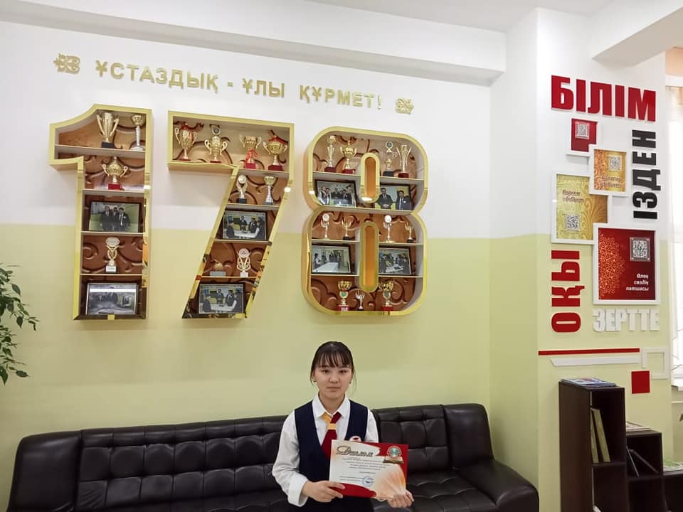 Республикалық «ДАРА БАЛА» журналының ұйымдастыруымен ”Сырлы қалам, сыр шертер” атты онлайн байқауында "Көркем сөз" аталымы бойынша өнер көрсеткені үшін l дәрежелі дипломмен 8 "Ә" сынып оқушысы Аршабай Ақбота марапатталды.
