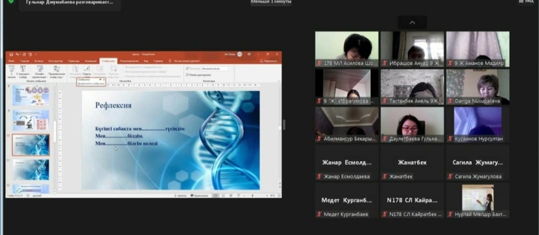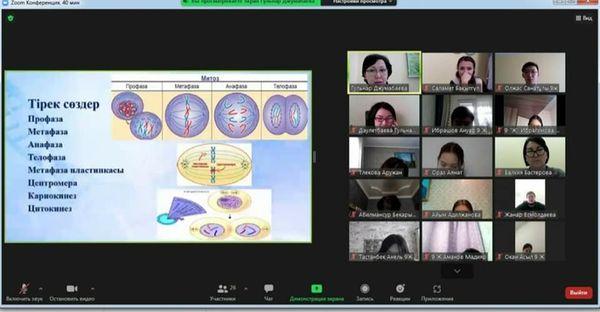 Жаратылыстану кафедрасының онкүндігі аясында №178 мамандандырылған лицейдің биология пәнінің мұғалімі Джумабаева Гульнар Бейсембековна 9 «Ж» сынып оқушыларымен «Митоз. Митоз фазалары. Зертханалық жұмыс №8 «Пияз тамыр ұшындағы жасушалардан митозды зерттеу» тақырыбында ашық сабақ өткізді.
