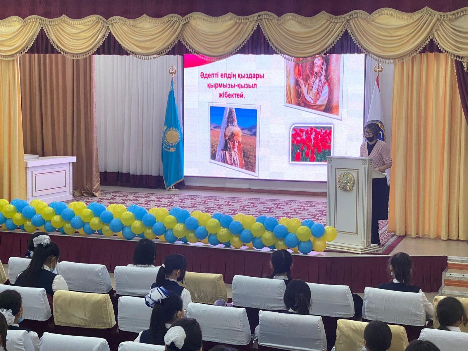 "Қызы анадан үйренбей, өнеге алмас" тақырыбында оқушылармен сұхбаттасып, қыздардың ойын тыңдап, кездесу өткізілді.