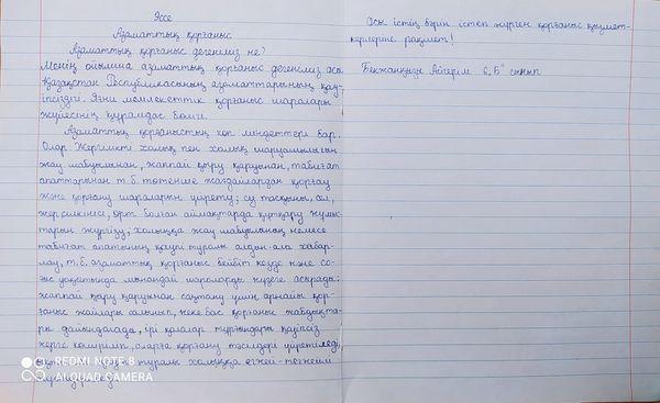 1 наурыз – Дүниежүзілік Азаматтық қорғаныс күні қарсаңында оқушылар эссе жазды.