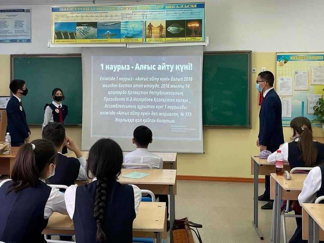 1 Наурыз - Алғыс айту күніне орай №178 мамандандырылған лицейде "Біз алғыс айта білеміз бе?" тақырыбында 5-6 сыныптар арасында тренинг, "Алғыс айту - парызым" тақырыбында 7 сыныптар арасында дөңгелек үстел, "1 Наурыз - Алғыс айту күні" тақырыбында 8-11 сыныптар аралығында сынып сағаттары өткізілді. Мақсаты: рақмет пен алғыс туралы түсінік беру, үлкен–кішіге деген сүйіспеншілігін, сыпайылық қарым-қатынасын дамыту, әдептілікке, кішіпейілділікке, ізеттілікке тәрбиелеу.
