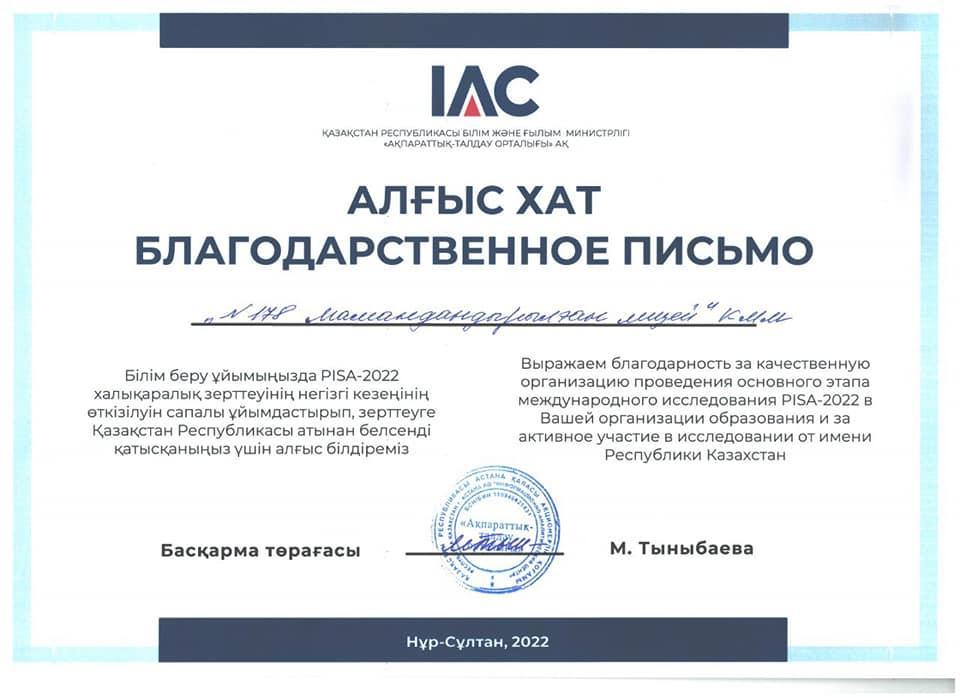 📝 Биылғы зерттеуге №178 мамандандырылған лицейдің 42 оқушысы қатысты. Зерттеу негізінде оқушылар оқу сауаттылығы, математика сауаттылығы, жаратылыстану-ғылыми сауаттылығы және креативті ойлау бойынша сұрақтарға жауап берді.