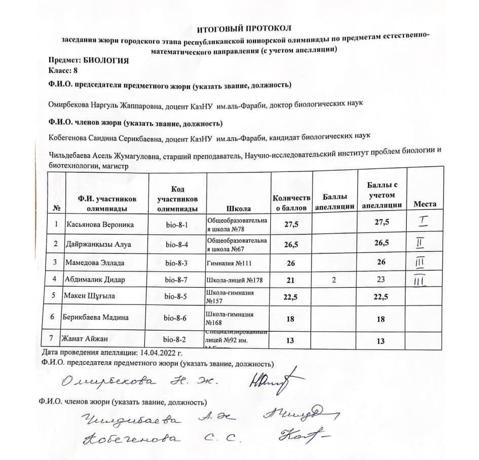 №178 мамандандырылған лицейде Алматы қаласы 7-8 сынып оқушылары арасында жаратылыстану-математикалық бағыты бойынша жасөспірімдер олимпиадасының қалалық кезеңі бойынша биология пәнінен 8-сынып оқушысы Абдималик Дидар 3-орынды жеңіп алды. Жетекшісі, биология пәні мұғалімі - Т.С. Жандыбаева. Жас дарын иесін олимпиада жүлдесімен шын жүректен құттықтаймыз!