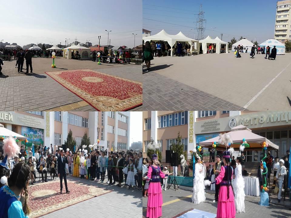 Айтулы мереке қарсаңында №178 лицей ұжымы да осындай бақыт пен шаттық, тыныштық пен бейбітшілік мерекесіне арналған іс-шара өткізді. Оқушылар халқымыздың салт-дәстүрінен сахналық қойылым көрсетіп, ұлттық ойындарынан бәсекеге түсіп, музыкалық ән-шашуларын жолдау арқылы мерекені ұйымшылдықпен тойлайтындығын және ғасырлар қойнауынан жеткен ұлттық салт-дәстүрімізбен тығыз байланысты екенін ауыл болып көрсетіп, жадымызда жаңғырта отырып, өздері де зор қызығушылық танытты.