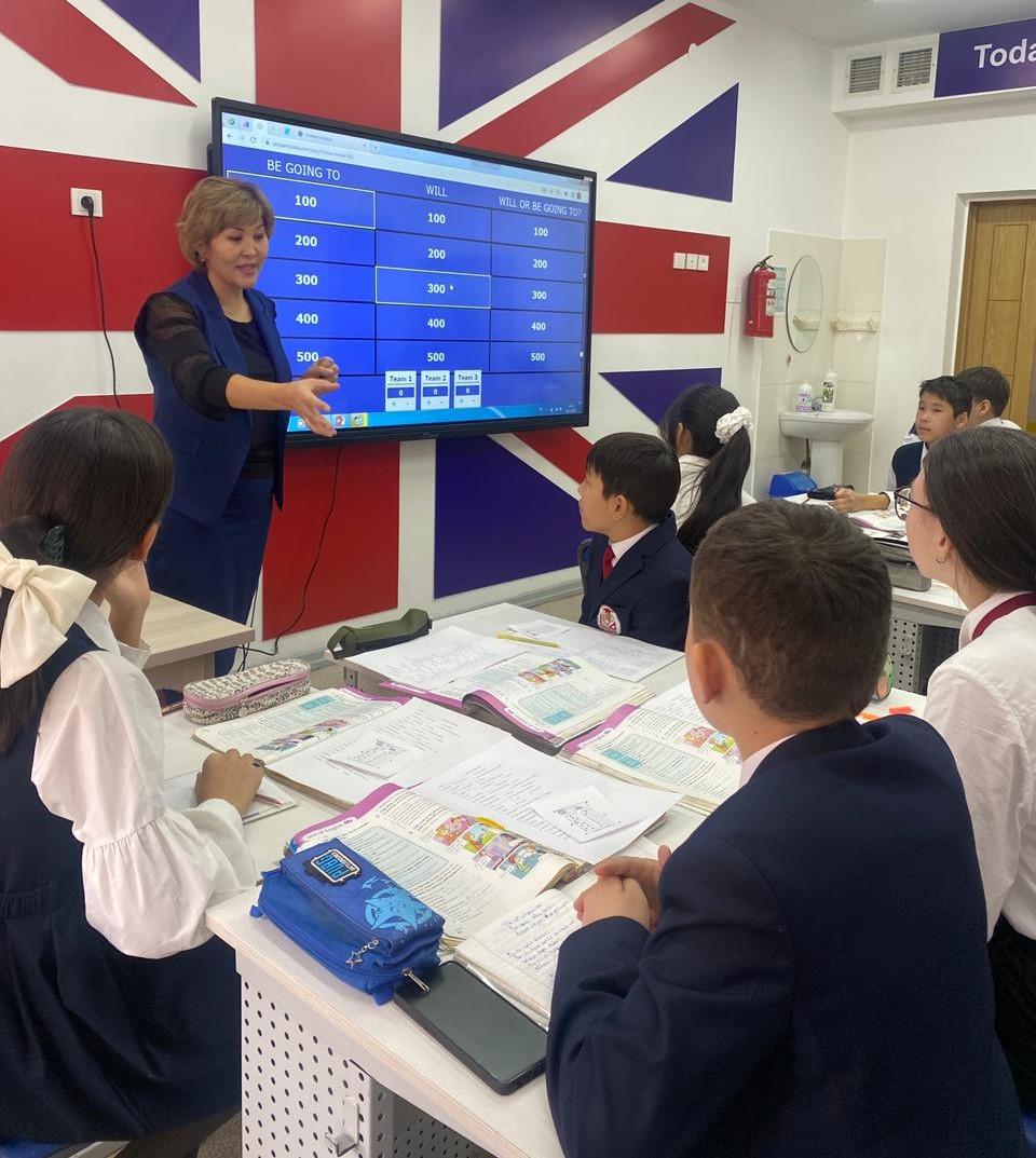 Қоғамдық-гуманитарлық пәндер кафедрасы айлығының аясында ағылшын тілі пәні мұғалімі Нусупалиева Д. 7 "Ж" сыныбында "Will-be going to – Present Continuous" тақырыбында ашық сабағын өткізді. Сабақ жаңашылдығымен ерекшеленді: АКТ технологиясы қолданылды, оқушылардың грамматикалық білімдері "ZIP" әдісімен смартфон арқылы тексерілді, "Mentimetr"-мен оқушылар сабаққа кері байланыс жасады.