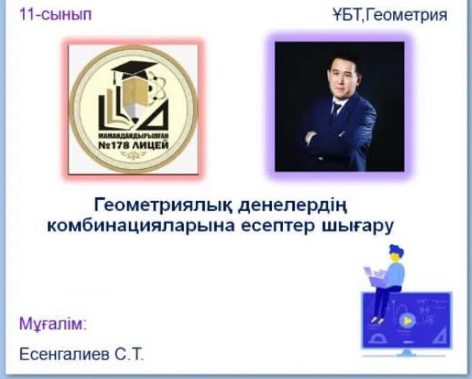 ҚББЖТҒӘО ұйымдастыруымен математика пәні бойынша 2023 жылдың 6 қаңтарында өткізілген "Тікелей сұхбат сағаты: мұғалім – әдіскер» жобасы аясында №178 мамандандырылған лицейдің математика пәні мұғалімі Есенгалиев Санат Турганұлы "Геометриялық денелердің комбинацияларына есептер шығару" тақырыбында іс-тәжірибесімен бөлісті. Тікелей эфир барысында олимпиадалық есептерді шешу жолдары қарастырылды. Сұхбат соңында рефлексия жасалып, сұрақтарға ауызша, жазбаша жауап берілді.