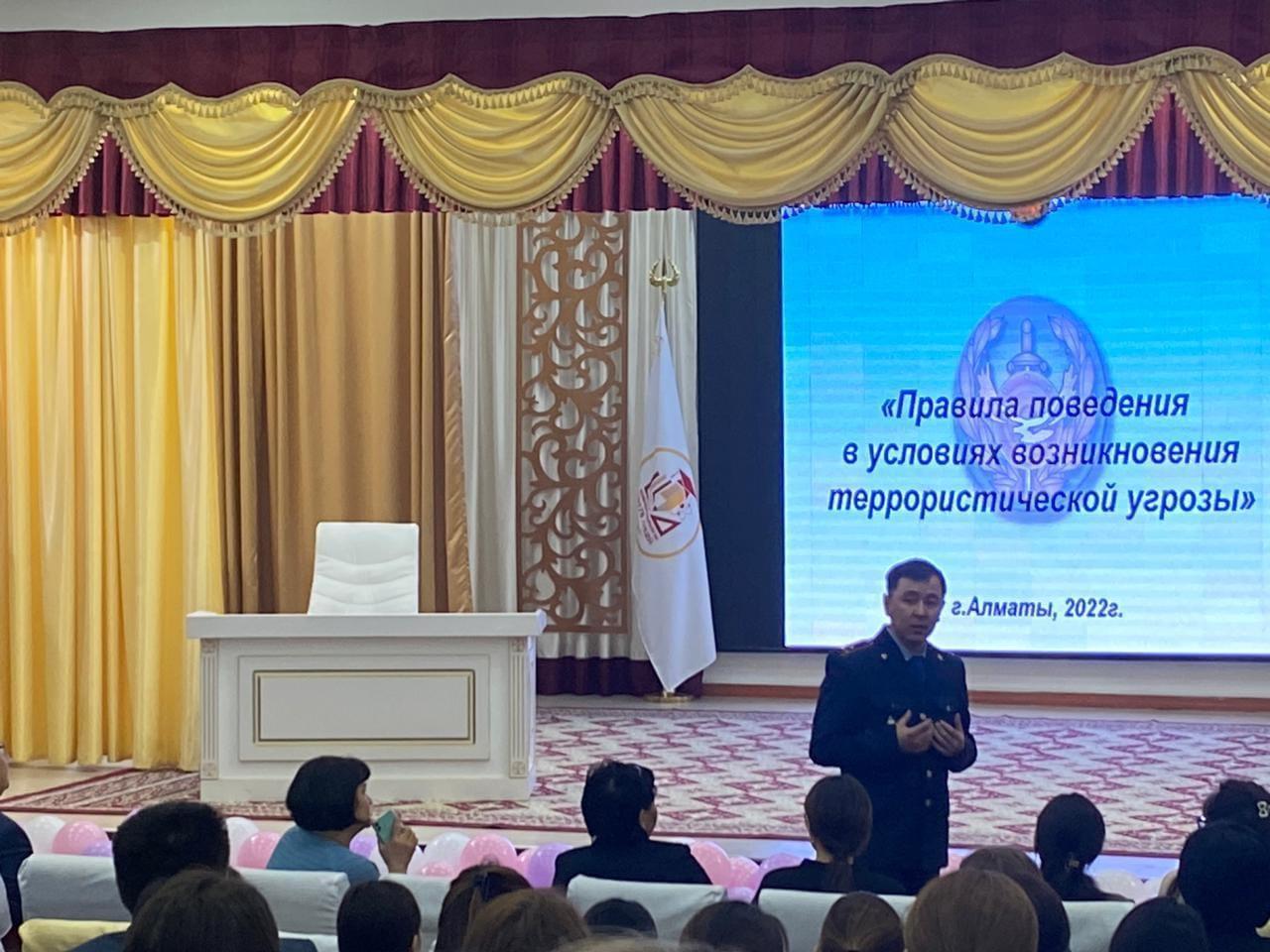 "Терроризм актінің қауіпі туындаған және терроризм актісі жасалған жағдайдағы іс-әрекеттер" тақырыбында дәріс тыңдалды.