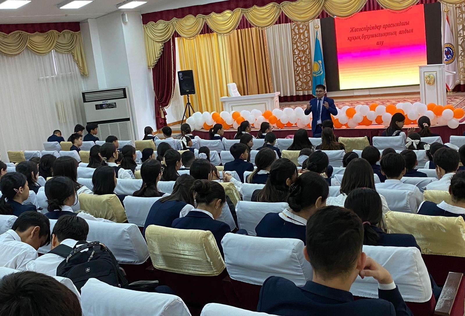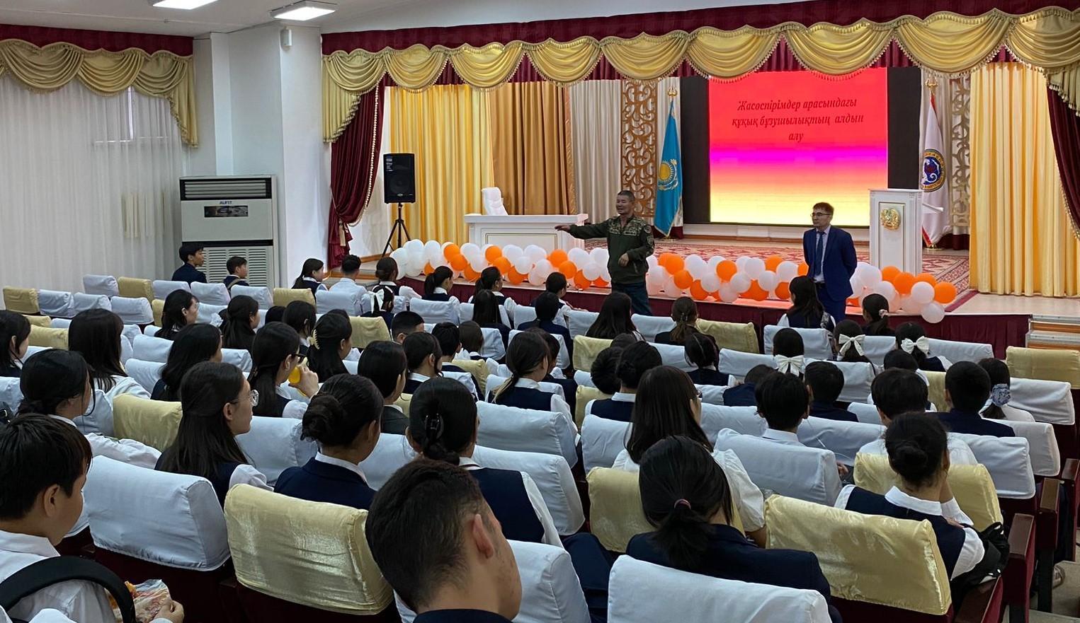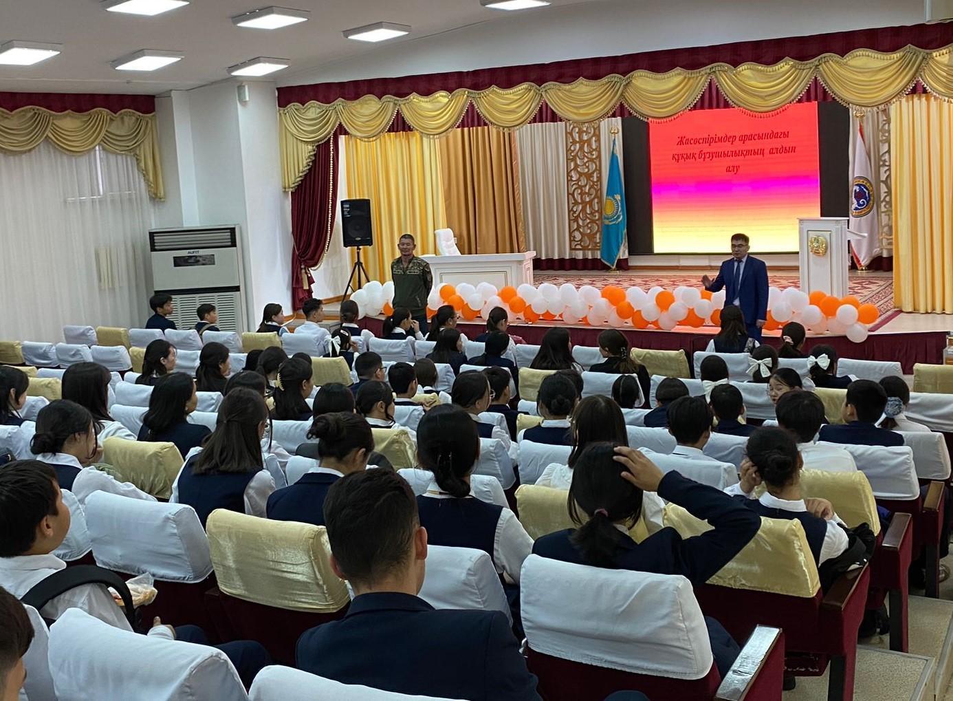 №178 мамандандырылған лицейде директордың тәрбие ісі жөніндегі орынбасары Б.Н.Кутумов, алғашқы әскери және технологиялық дайындық пәнінің мұғалімі Б.А.Курмансейітов "Жасөспірімдер арасындағы құқық бұзушылықтың алдын алу" тақырыбында 6-11 сыныптар арасында жиналыс өткізді.