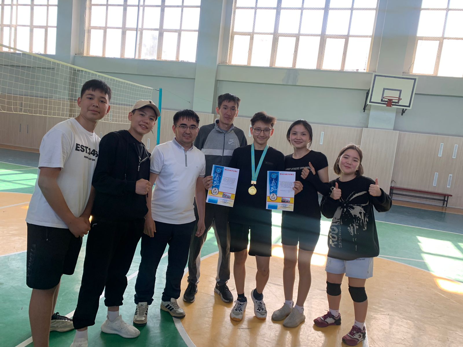 7 мамыр – Отан қорғаушылар күніне орай 7-8 сынып оқушылары арасында волейболдан жарыс өткізді.