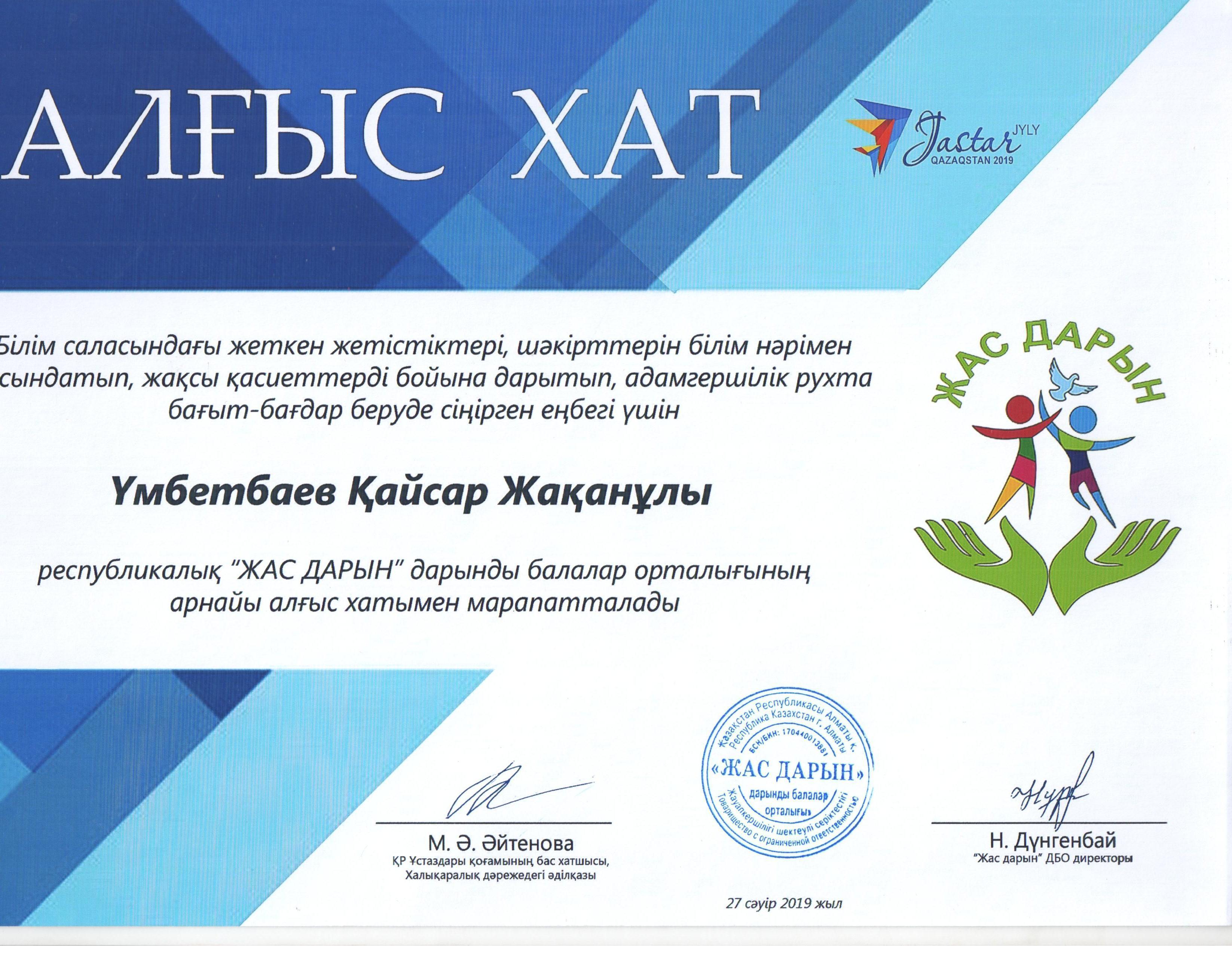 Республикалық «ЖАС ДАРЫН» дарынды балалар орталығы ұйымдастырған конкурс