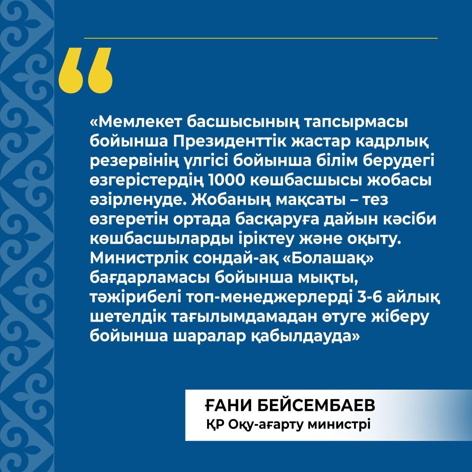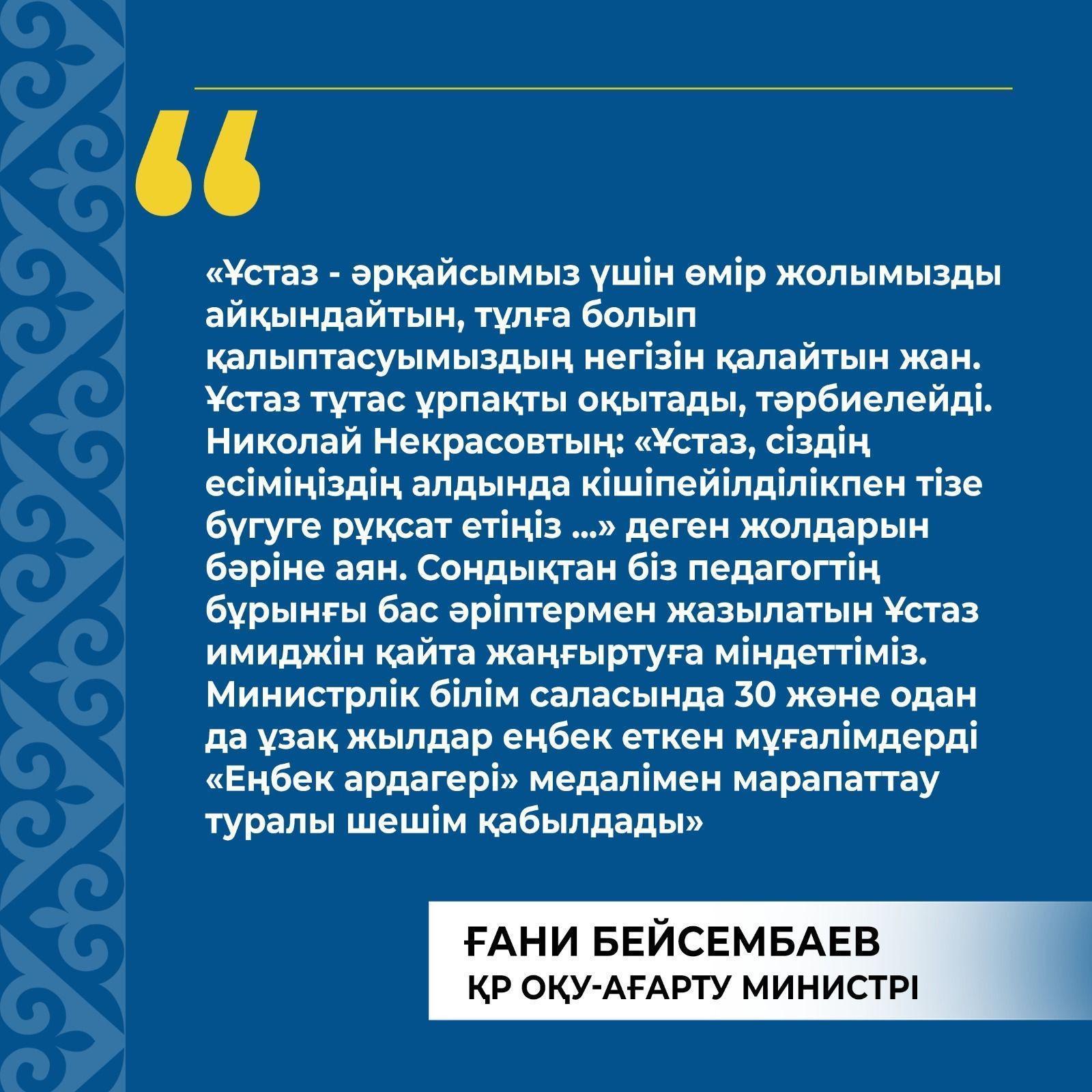 Оқу-ағарту министрі Ғани Бейсембаевтың білім беру қызметкерлерінің Республикалық тамыз кеңесінің секциялық отырысында сөйлеген сөзінен