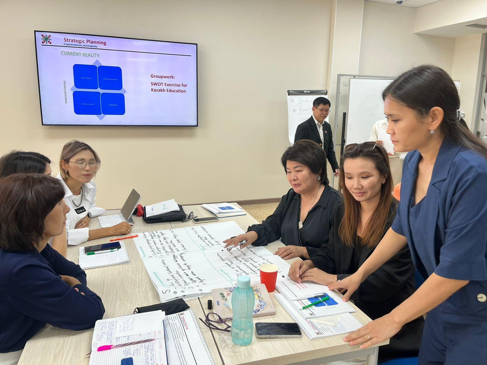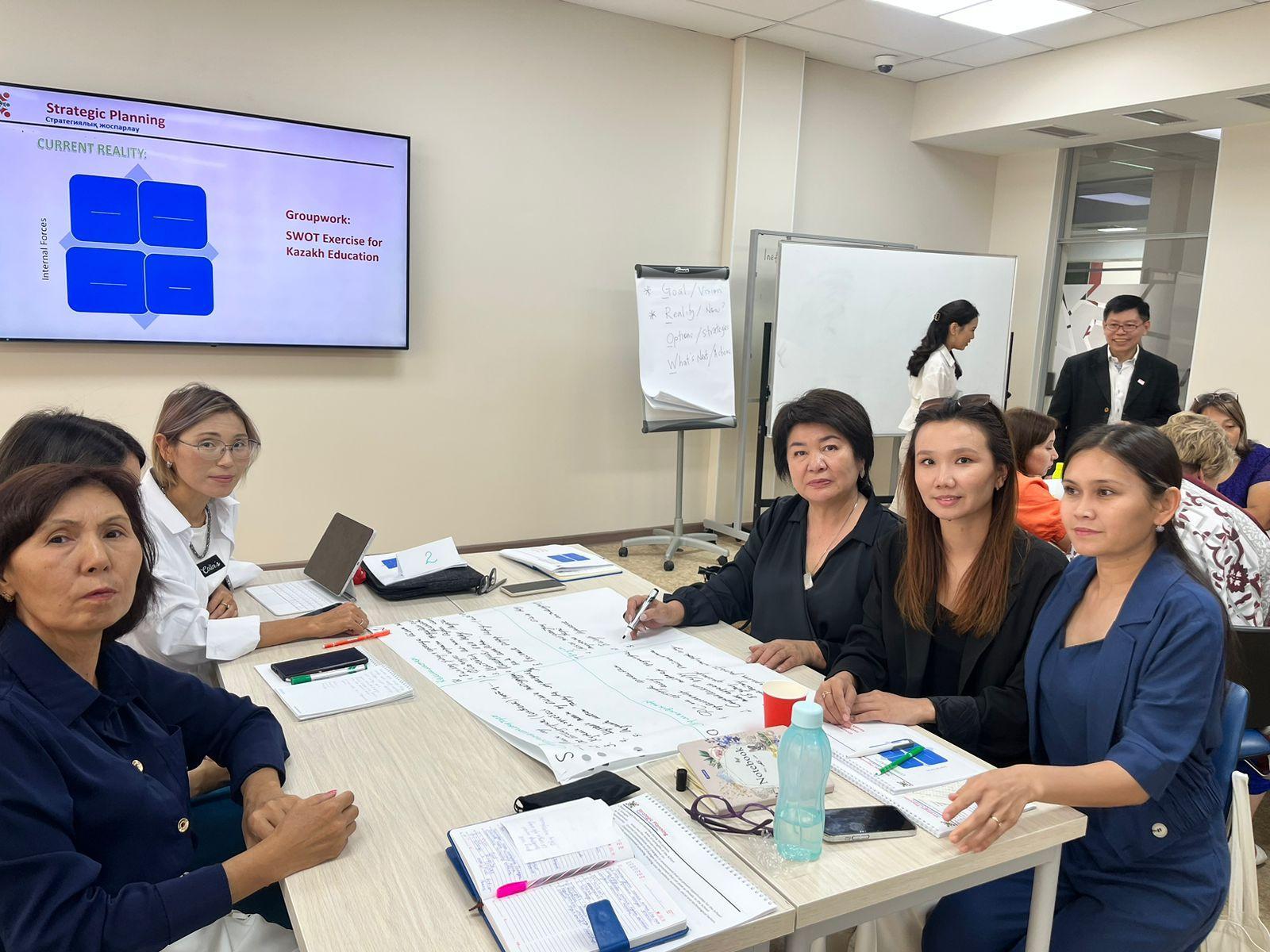 4 сағатқа созылған тренингте Орта білім берудегі стратегиялық жоспарлау және басқару туралы құнды ақпараттар беріліп рефлексия жасалды.