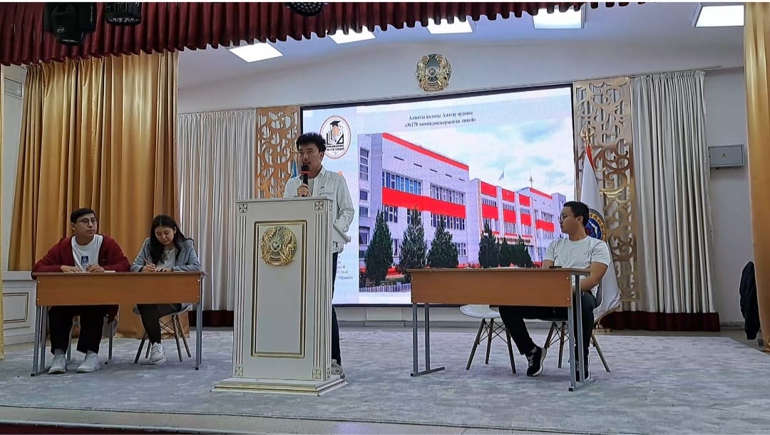 «Тұран» университетінің «SIRIUS» интелектуалды дебат клубы лицейіміздің «Алаш жастары» дебат клубымен бірлесе лицей оқушыларына көрс