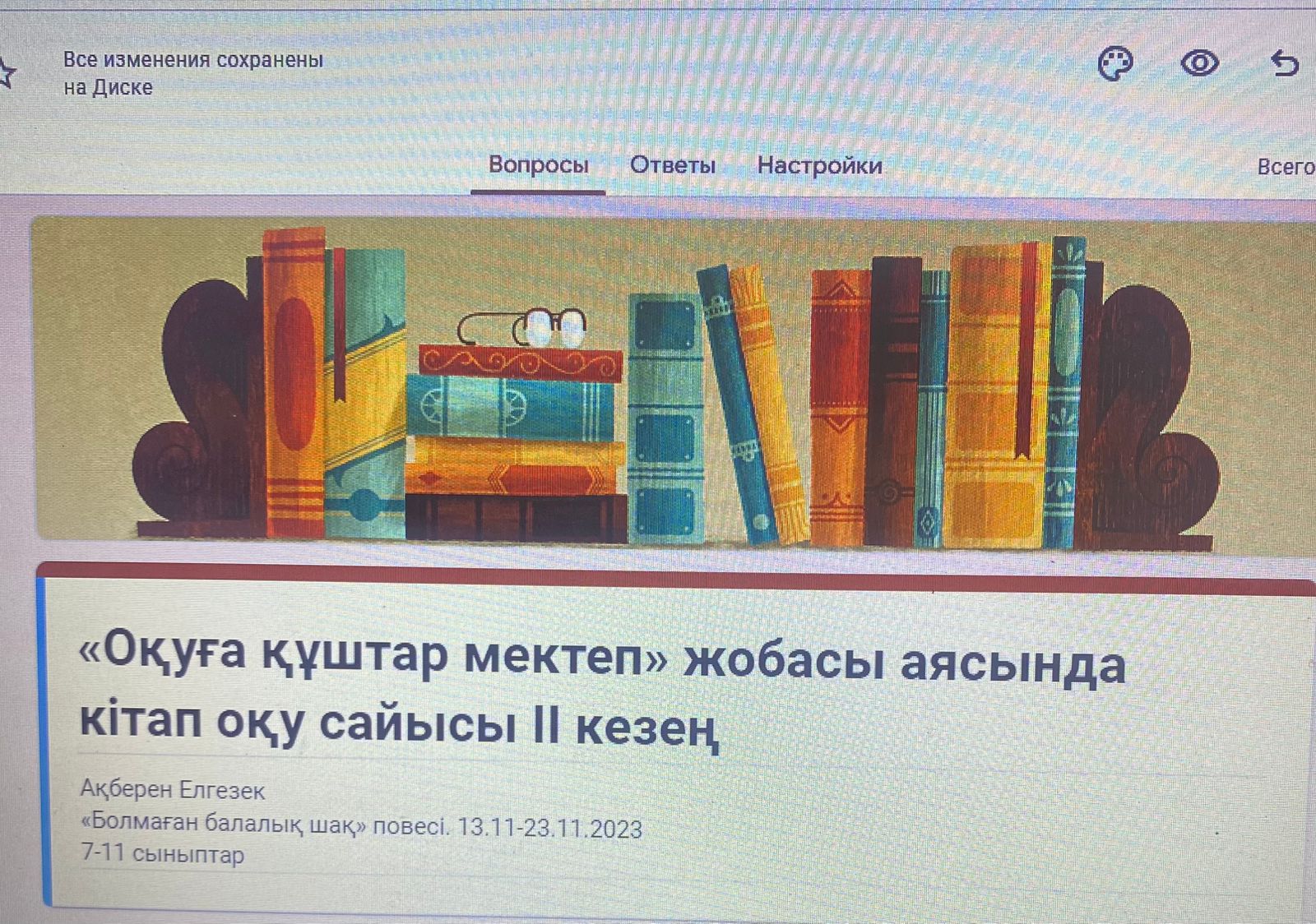 “Оқуға құштар мектеп” жобасы аясында өткізіліп жатқан “Кітап оқу” сайысының ІІ кезеңі де тәмам