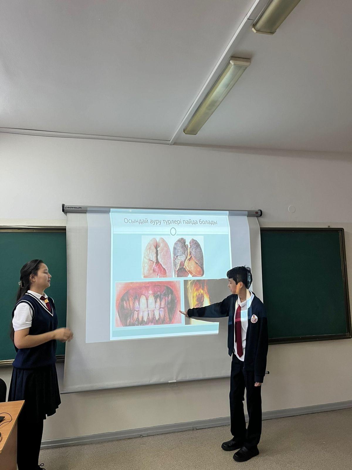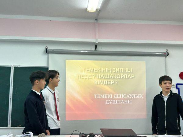Мақсаты: оқушыларды зиянды әдеттерден сақтандыру, темекінің ағзаға тигізетін әсері және одан туындайтын ауру түрлері, олардың алдын алу шаралары туралы білуге, салауатты өмір салтын қалыптастыруға бағыттау.