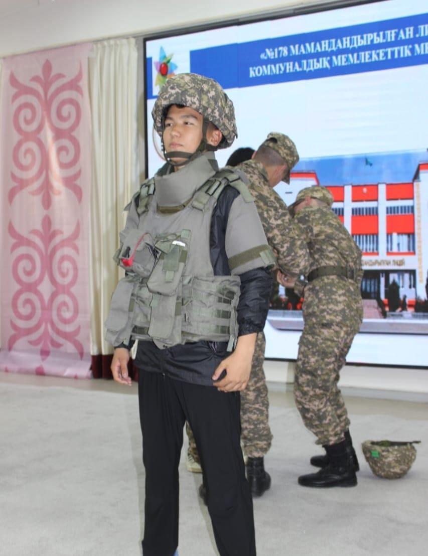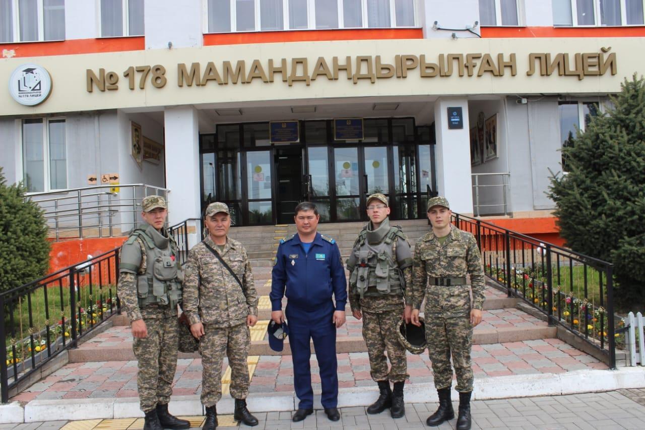 7-мамыр – Отан қорғаушылар күні мерекесіне орай жастарды әскери-патриоттық тәрбиелеу, отанға деген сүйіспеншілігін арттыру және де бастапқы әскери дайындықтың оқу-материалдық базасын қалыптастыру мақсатында №55065 әскери бөлімі командирінің ТжИЖ жөніндегі орынбасары подполковник А.Ниязалиев, база 1-сыныпты сержант К.Шарипов және әскери қызметшілердің отбасымен жұмыс жасау қызметінің басшысы азаматтық қызметші С.Құдайбергенова №178 мамандандырылған лицей директорының тәрбие ісі жөніндегі орынбасары Б.Н.Кутумовтың ұйымдастыруымен 9-10 сынып оқушыларына "Ерлік сабағы" тақырыбында іс-шара өткізді.