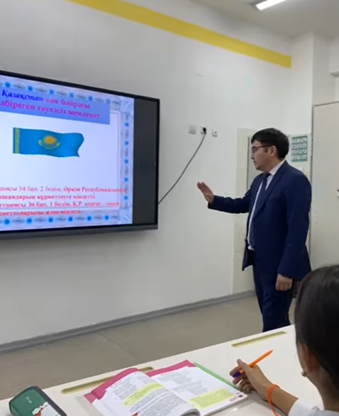 №178 мамандандырылған лицейде оқушыларды патриотизмге, Қазақстан республикасының рәміздерін құрметтеуге тәрбиелеу және рәміздерді насихаттау мақсатында директордың тәрбие ісі жөніндегі орынбасары Б.Н.Кутумов "Мемлекеттік рәміздер мақтанышым"тақырыбында түсіндірме жұмыстарын жүргізді.