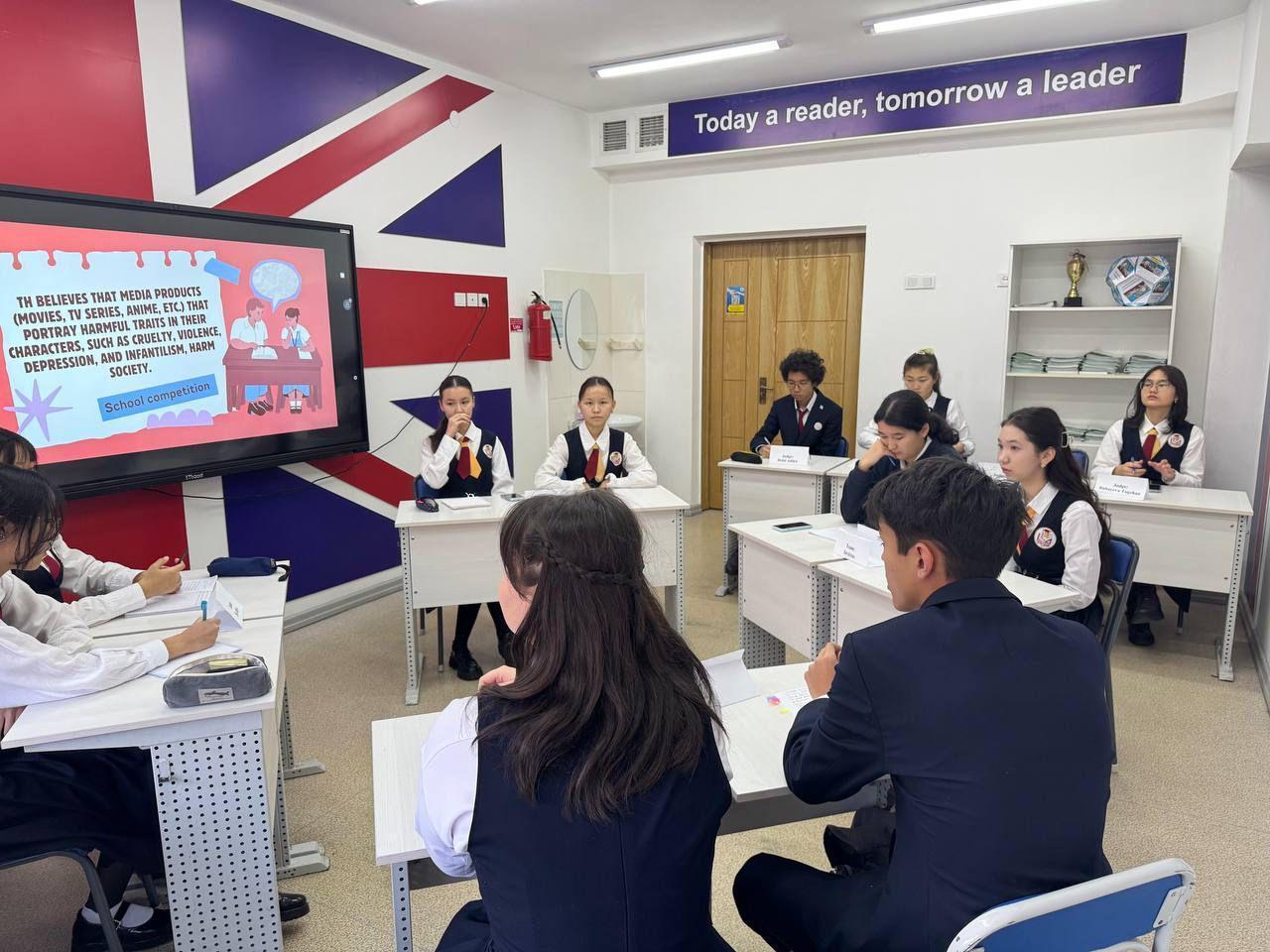 Ағылшын тілі мұғалімдері: Ауельбекова А., Алсаева А., СарсенбиеваС., Мамутова А., Нусупалиева Д. 9 сынып оқушыларымен дебат ойынын өткізді.