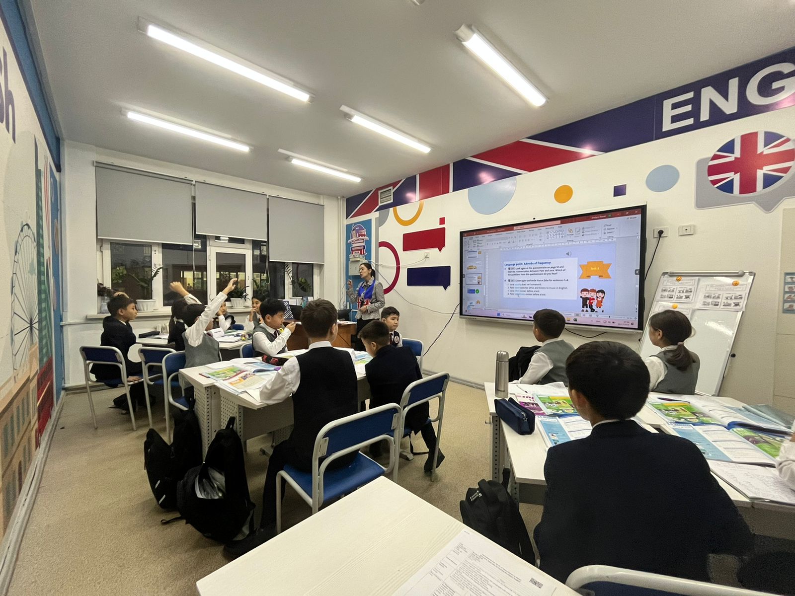 Қоғамдық -гуманитарлық пәндер кафедрасының онкүндігі аясында ағылшын тілі мұғалімі Жанат Ж. «Studying habits» 5Г сыныбында ашық сабағын өткізді.Сабақта тілдік дағдыларды дамытуға арналған тапсырмалар орындалып, кері байланыс жасалды, заманауи платформаларды тиімді қолдана білді, сабақтың мақсаттары орындалды.