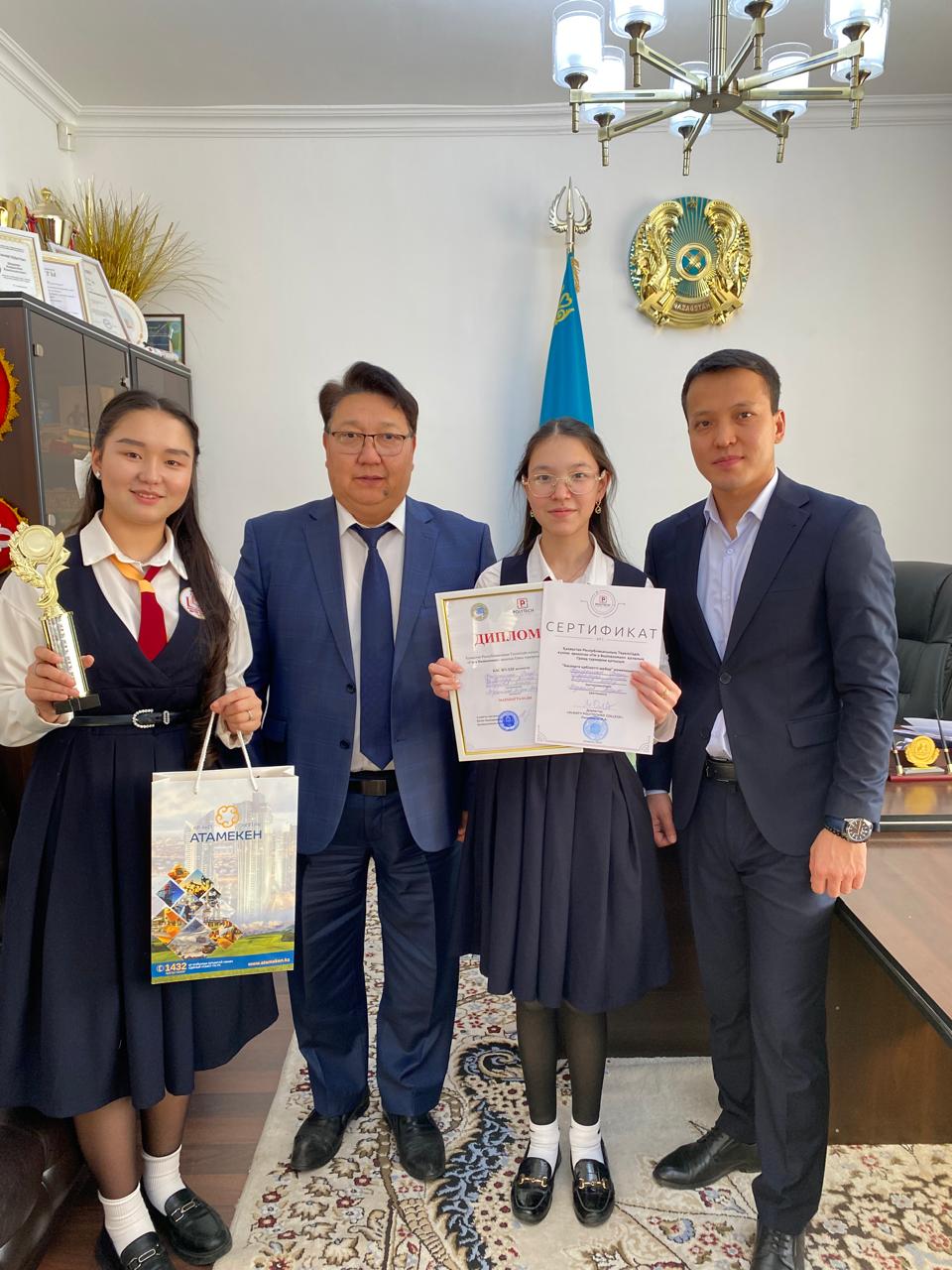 Қазақстан Республикасының Тәуелсіздік күніне арналған “I’m a Businessman” қалалық Гранд турниріне белсенді қатысып, барлық сыннан сүрінбей өткен 10 "Ә" сынып оқушылары Файзрахман Расул, Жұманазар Аиша және Доғдырбай Айару БАС ЖҮЛДЕГЕ ие болды.