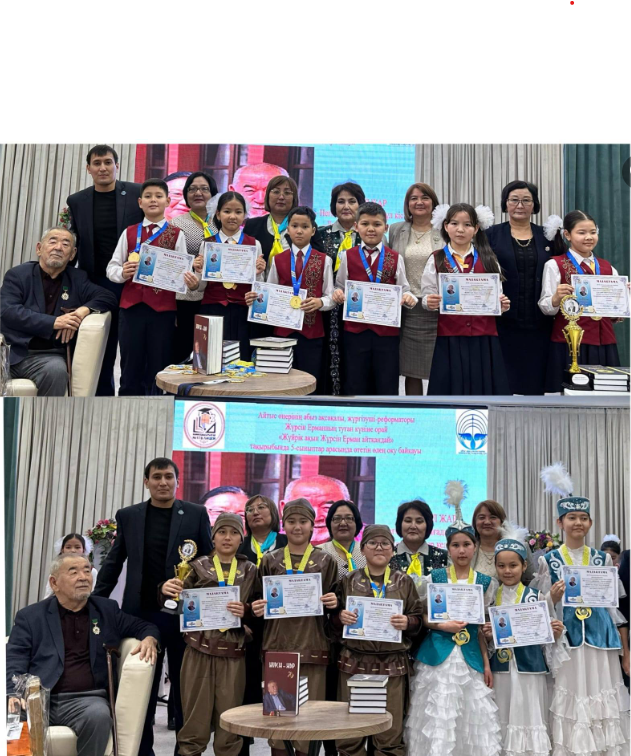 Сондай-ақ байқауда үздік өнер көрсеткен оқушылар мен сыныптарға номинациялар және статуэткалар, кубок-медаль, халықаралық жыршы және термешілер одағы атынан мадақтамалар табыс етілді. Дарынды және талантты оқушыларымызды кештің басты қонағы Жүрсін Ерман өзі марапаттады. Жалынды жастардың болашағы жарқын болсын!