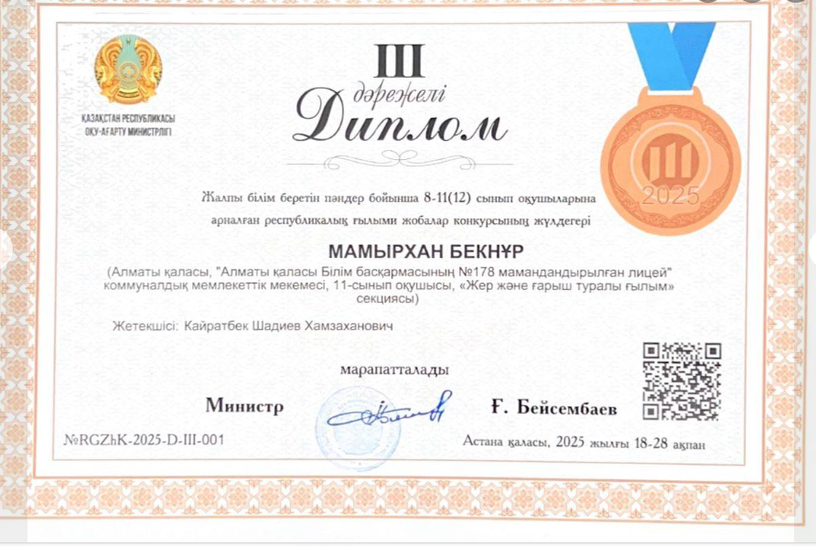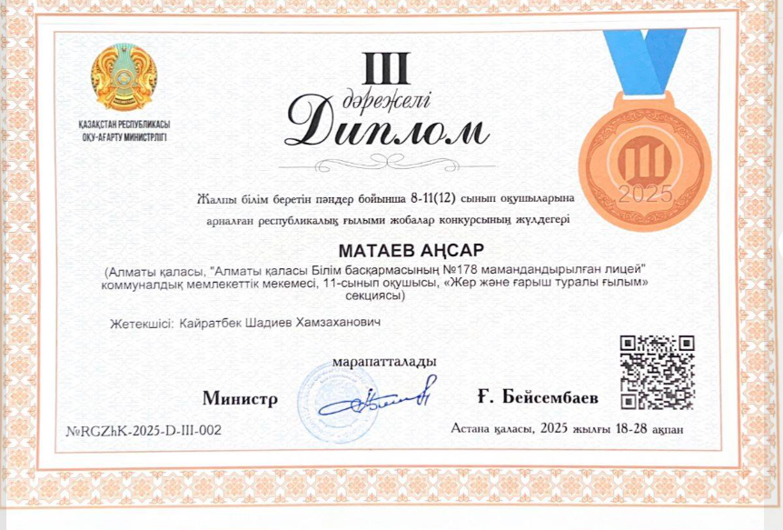 ”Жер және ғарыш туралы ғылым”секция бойынша: