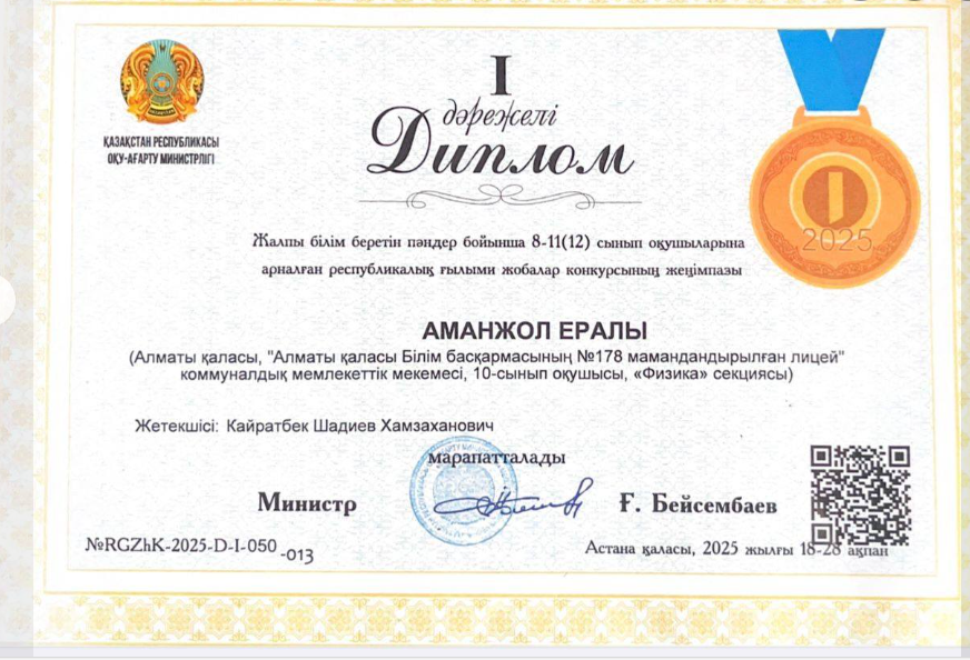 Ақтөбе қаласында өткен Республикалық ғылыми жобалар конкурсының жаратылыстану-математика бағыты бойынша жеңімпаз атанған оқушыларымызды шын жүректен құттықтаймыз!