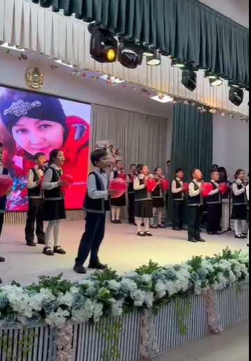 Лицей директоры ресми құттықтап, марапаттар беріп қана қойған жоқ, лицейдегі ер-азаматтармен бірге әуелете ән салды.