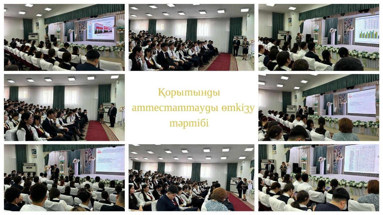 2025 жылдың 9 сәуірінде 11-сынып оқушыларына қорытынды аттестаттау өткізу тәртібін түсіндіру және оларды тиімді дайындауға бағытталған қолдау көрсету мақсатында ақпараттық жиналыс өткізілді. Жиын барысында емтихан ережелері, бағалау критерийлері және дайындық жолдары кеңінен түсіндірілді. Іс-шара оқушылардың сауалдарына жауап беру мен сенімділігін арттыруға бағытталды.