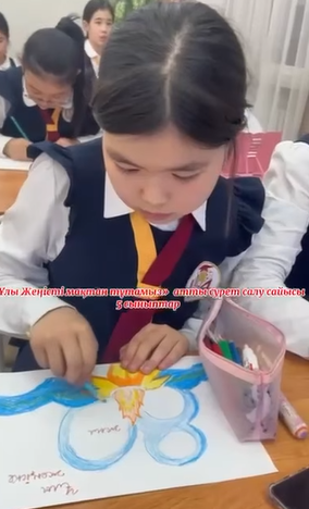 16 апрель 2025 0 1 2 3 4 5 Сурет арқылы сыр шерткен тарихи оқиғалар Ұлы Жеңістің 80 жылдығына орай, 5-сынып оқушылары «Ұлы Жеңісті мақтан тұтамыз» тақырыбында сурет салды. Мақсаты: оқушыларды елін, жерін, Отанын сүюге тәрбиелеу. Осы беттің QR-коды:QR-код этой страницы: