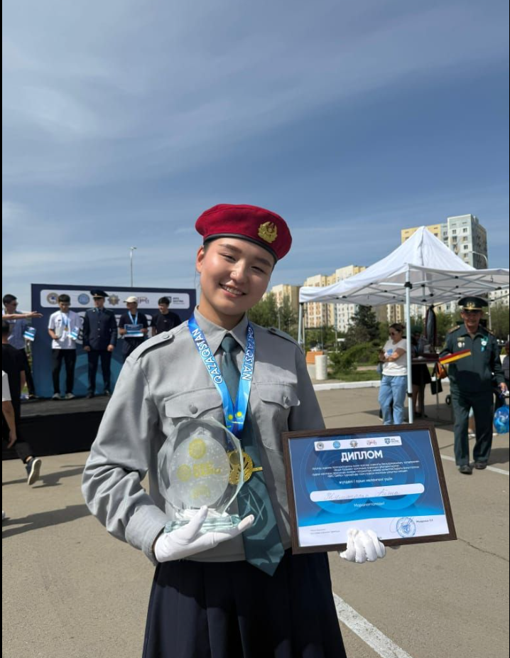 Алатау ауданының намысын қорғап, Отан қорғаушылар күніне арналған әскери-патриоттық "БЕС QARU" турнирінде көзге түскен мықты жастың бірі — 10 "Ә" сынып оқушысы Жұманазар Айиша.