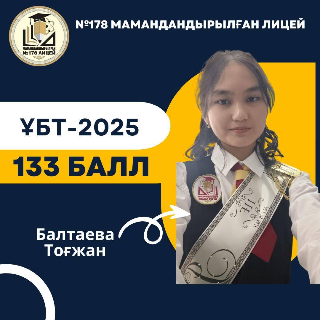 2025 жылғы Ұлттық бірыңғай тестілеуде лицейдің 11-сынып оқушылары жоғары нәтижелерге қол жеткізді.