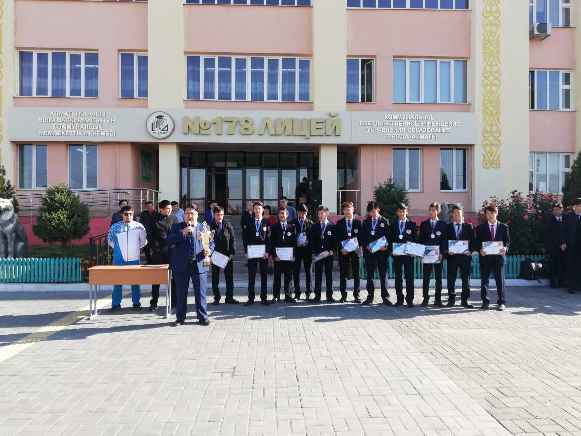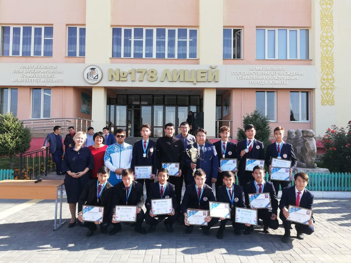 №178 лицейінің директоры Шадиев Қайратбек Хамзаханұлы Көкшетау қаласында оқушылар арасында өткен «Бурабай кубогы» жарысынан жүлделі ІІ орын жеңіп алған лицей оқушыларына құрмет көрсетіп, Алматы қаласының намысын қорғаған аяқ доп шеберлерін жеңістерімен құттықтады.
